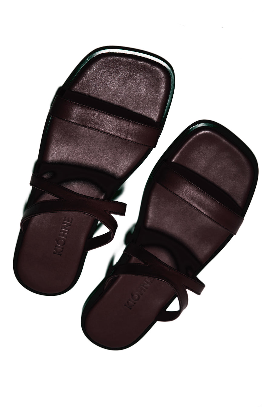 The NOAH sandals are crafted from calfskin leather. The top features a deconstructed depiction of the Kiohne brandmark, and the insoles are cushioned for added comfort, making them ideal for all-day wear.
