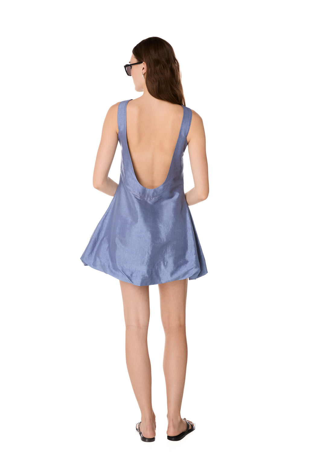 The SITIA mini dress is made from taffeta silk fabric and features a balloon silhouette with a cross halterneck neckline and an open back.